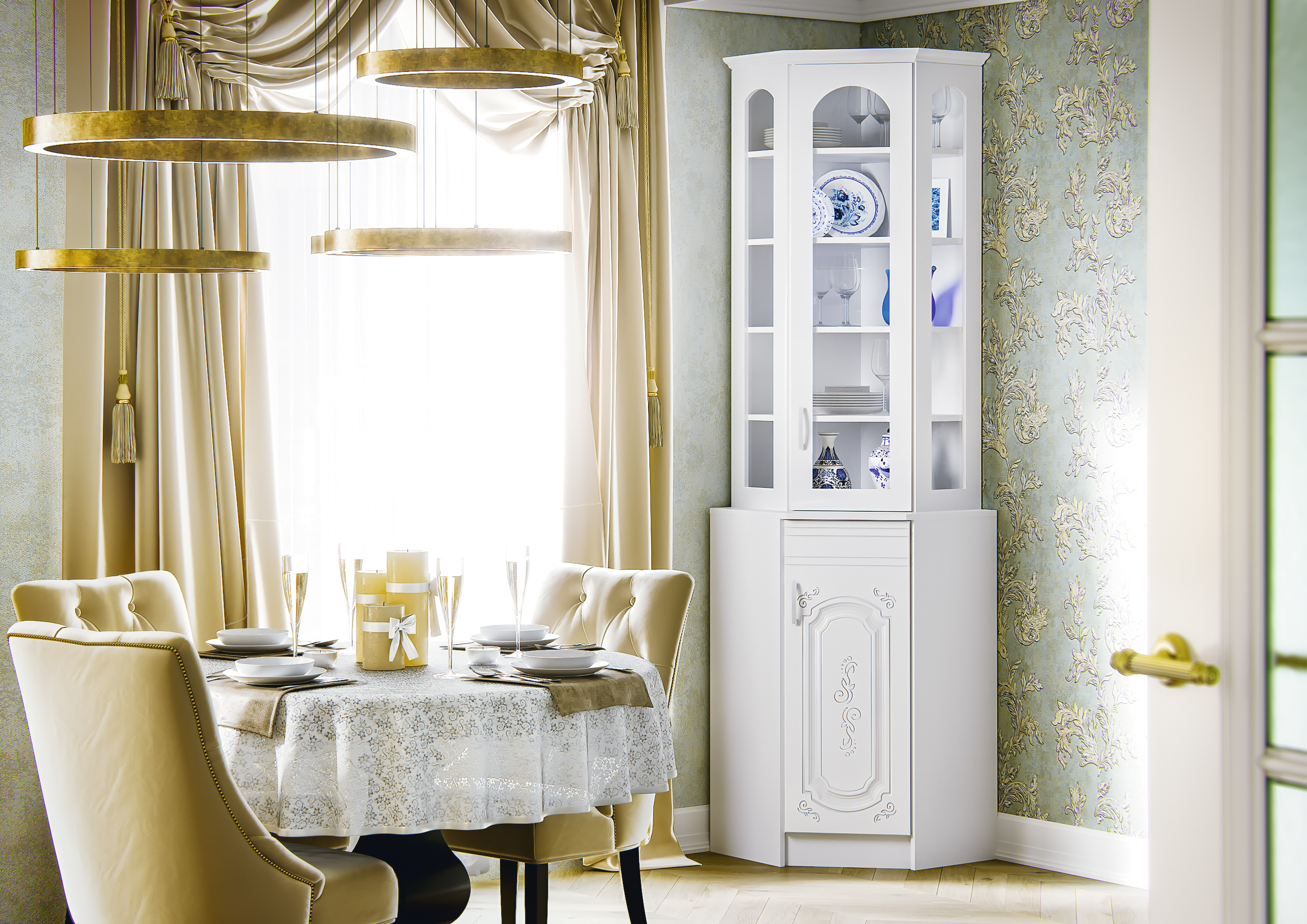 Угловой буфет занимает самое неудобное место на кухне - угол. Компактный и стильный буфет "Лиза-2" займет достойное место в вашем доме.