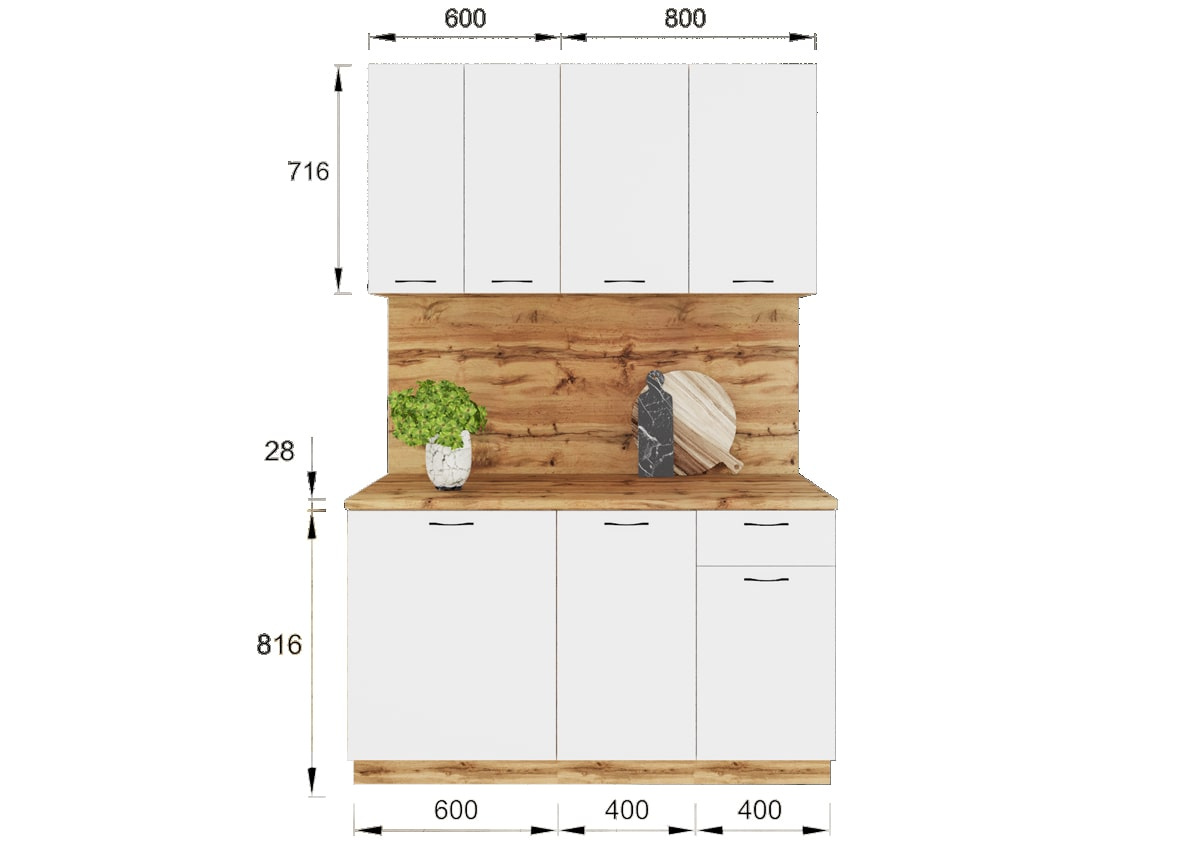 Столешница: 26мм, длина 1400 мм под врезную мойку