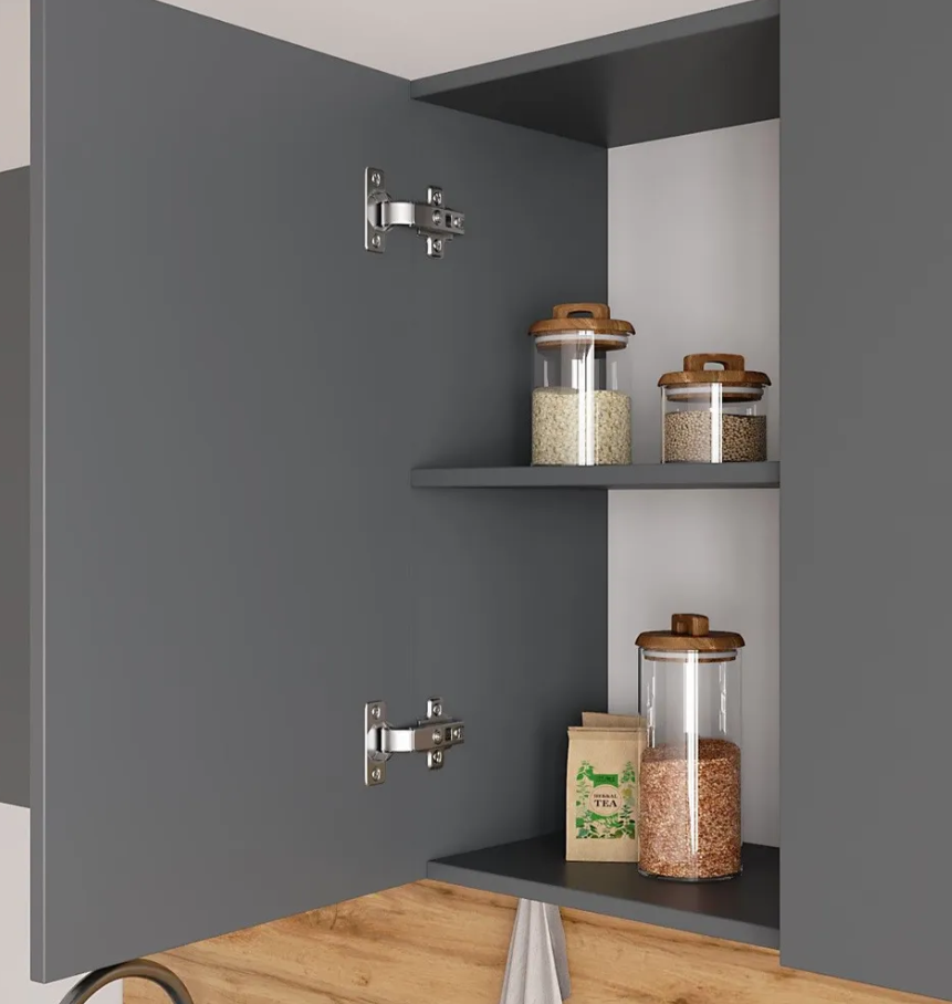 Купить Кухню в Томске “МОРИ” 2 метра выполнена в современном стиле, с интегрированной ручкой. Открывание дверей и ящиков производится за счет пространства между планками и фасадами.
