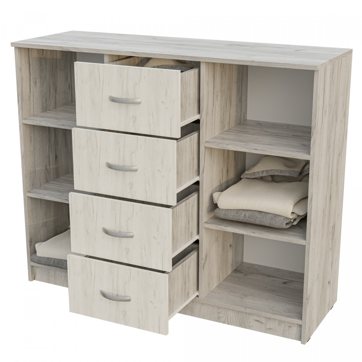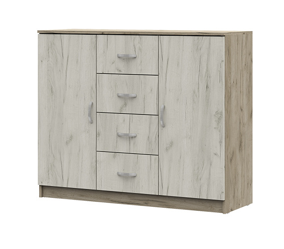 Комод Басса КМ 555 - недорогой вместительный комод, у которого имеются и 4 выдвижных ящика, и 2 дверцы - створки.