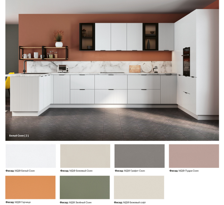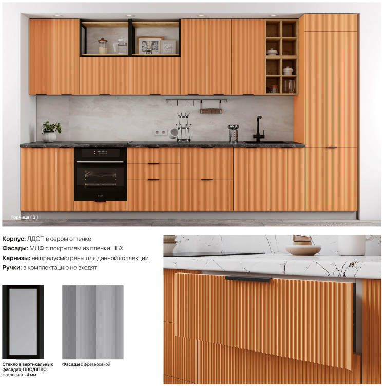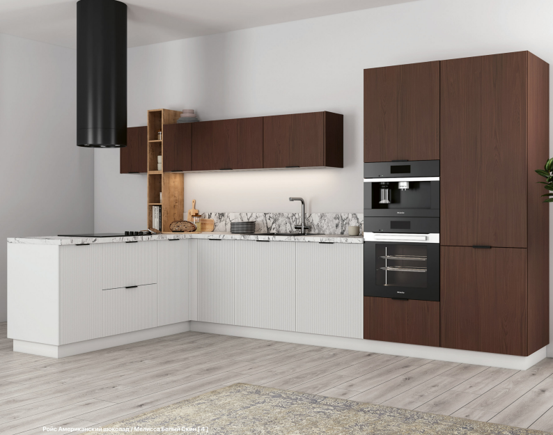 Коллекция «Мелисса» – это интригующая симфония изысканности и функциональности, созданная для тех, кто стремится к непревзойденной элегантности в своей кухне. Каждая деталь этой коллекции вдохновлена гармонией форм и прекрасно сбалансирована. Утонченная вертикальная рельефная фрезеровка фасадов придает им неповторимую глубину и изысканность, создавая зрительное впечатление произведения искусства