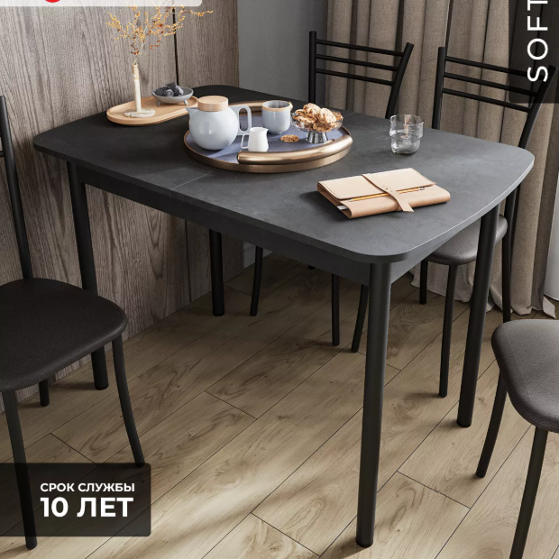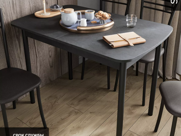 - Оптимизация пространства: Стильный раздвижной механизм позволяет увеличить площадь столешницы на дополнительные 300 мм, обеспечивая комфортное размещение гостей или удобное рабочее место.