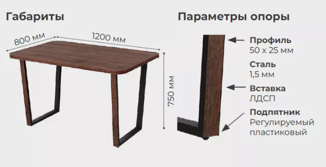 Каркас: разборный, полимерно-порошковая покраска, декоративная вставка из ЛДСП