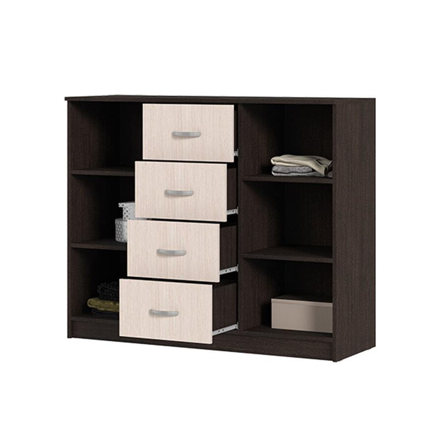Комод Басса КМ 555 - недорогой вместительный комод, у которого имеются и 4 выдвижных ящика, и 2 дверцы - створки.