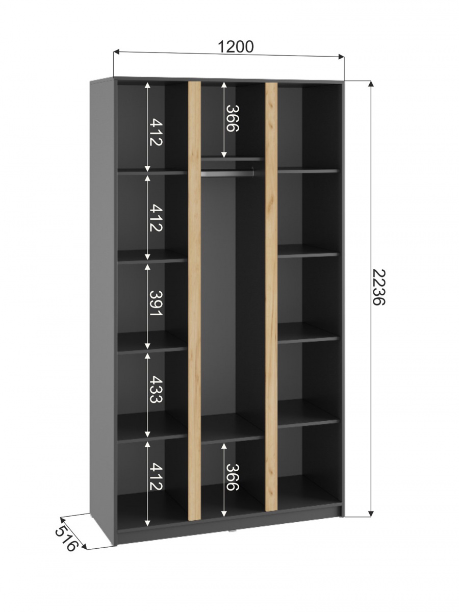 • Три дверки: позволяют комфортно размещать вещи большого объема, такие как куртки, пальто, платья и костюмы. Легкий доступ ко всей площади шкафа облегчает процесс подбора одежды утром перед работой или выходом на прогулку.
