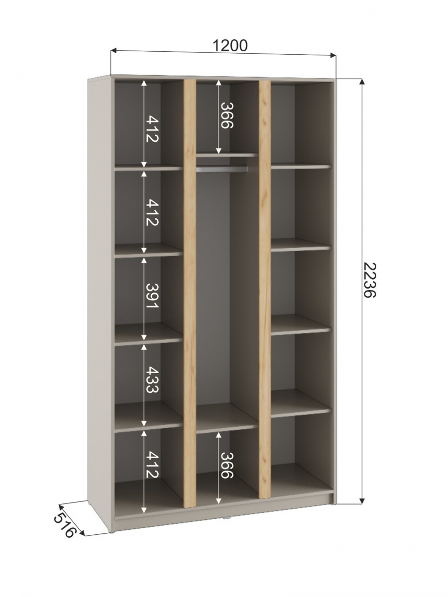 • Три дверки: позволяют комфортно размещать вещи большого объема, такие как куртки, пальто, платья и костюмы. Легкий доступ ко всей площади шкафа облегчает процесс подбора одежды утром перед работой или выходом на прогулку.