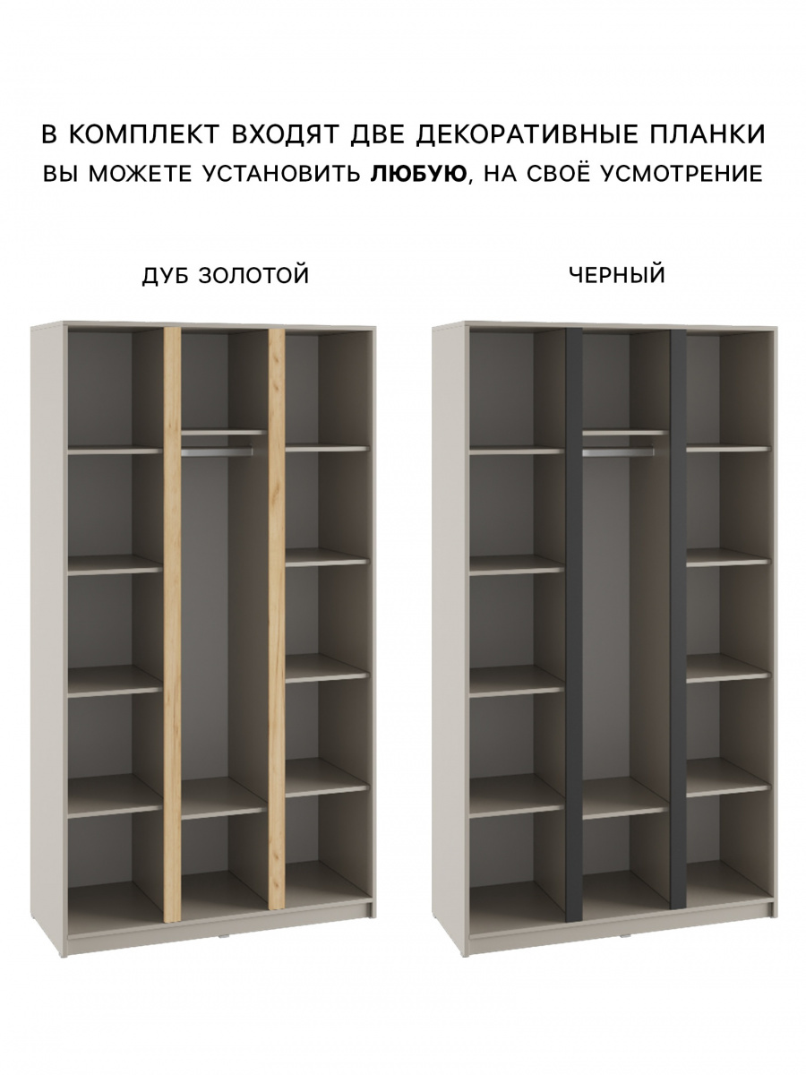 Для каждого корпуса шкафа в комплекте предусмотрено два варианта вертикальных вставок на выбор: ЛДСП чёрный и ЛДСП крафт золотой